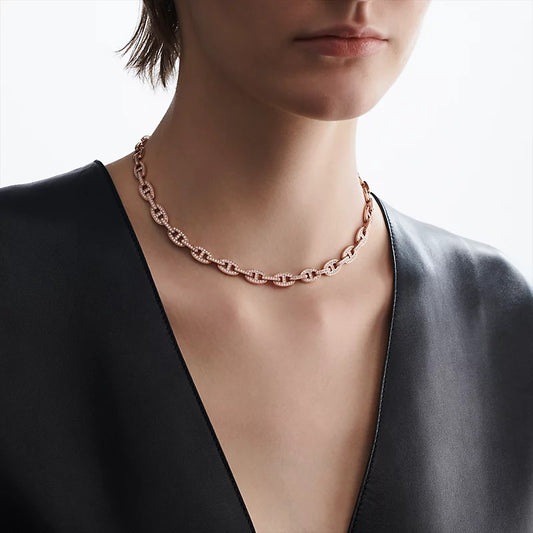 AMS-H221203B猪鼻子日字满钻项链