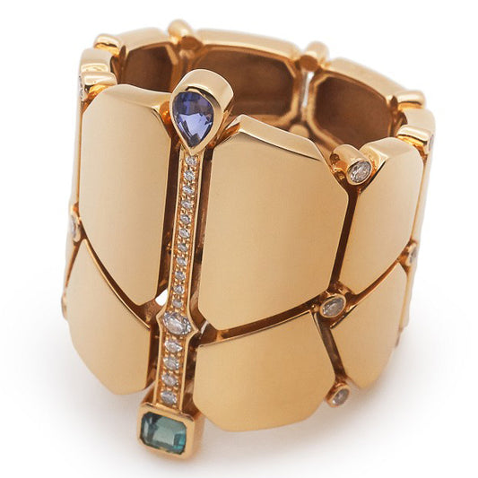 爱H仕-H255715B半钻晕花光金臂戒指12.5#