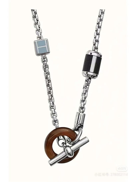 爱H仕-H126436B男生Q玛瑙方形链50cm项链