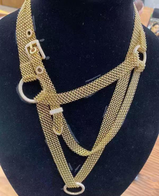 爱H仕-H116086B镶钻皮带活动项链