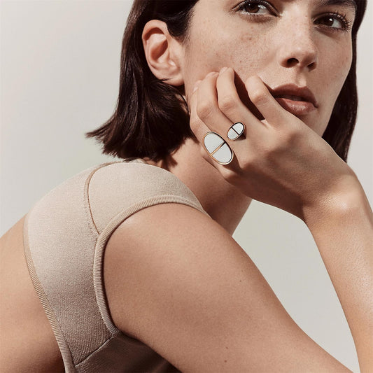 AMS-H121640B白贝玛瑙款猪鼻子双日字戒指