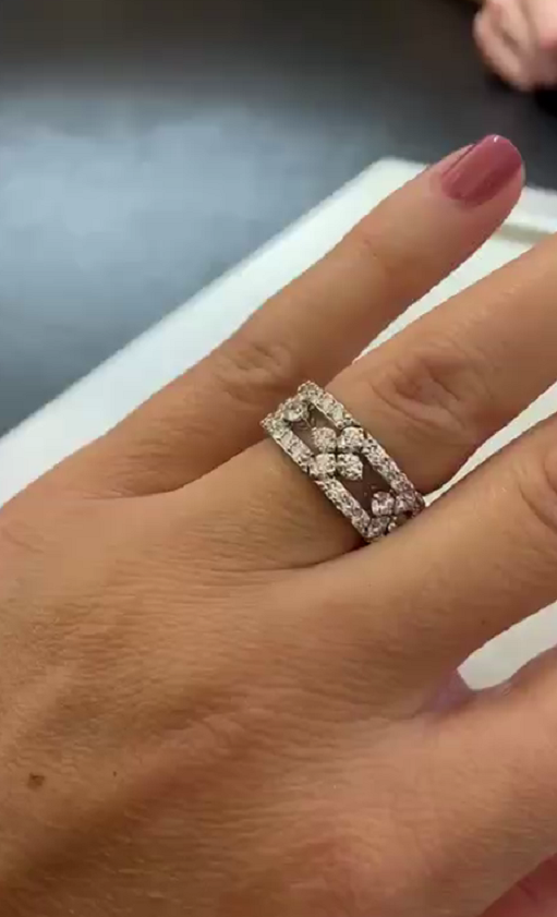 LBT-8883408AJ65X宽28.4mm四叶梅花镶钻分色双S飞标戒指