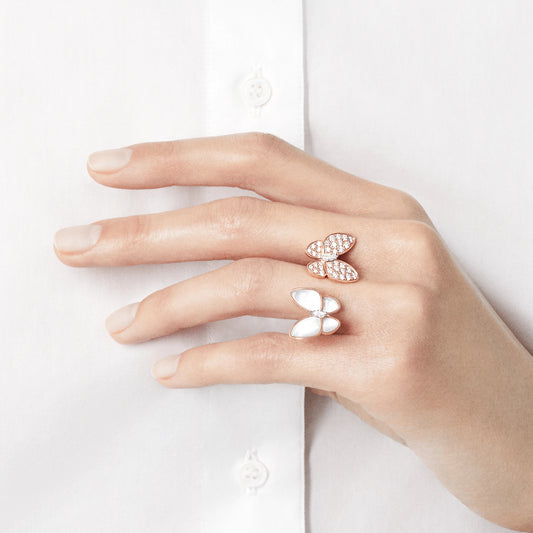 VCARO7AL00白贝+满钻蝴蝶开口戒10.5#