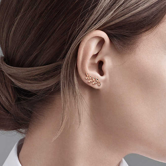 TIF8854124镶钻橄榄枝树叶长耳钉
