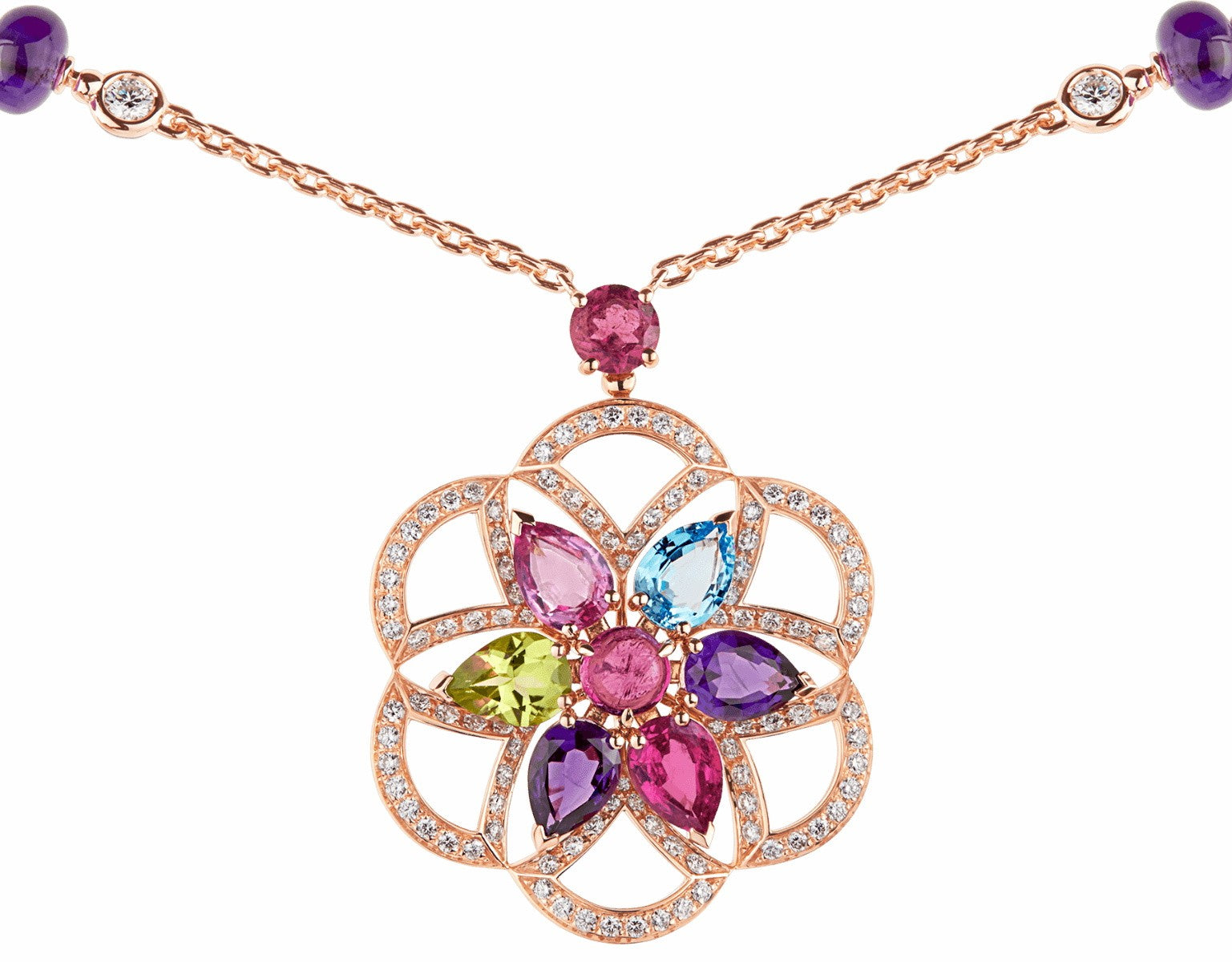 BGL-CL858373-355617 fan-shaped skirt fan colorful treasure hollow tether pendant necklace