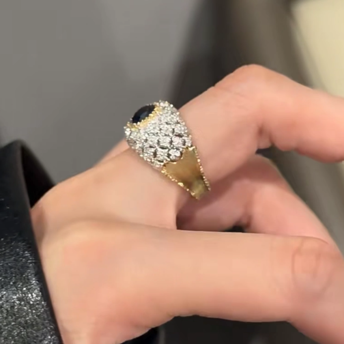 BQLT-RIN624933 lace egg-shaped stone colored gemstone hollow large round arm ring 15#