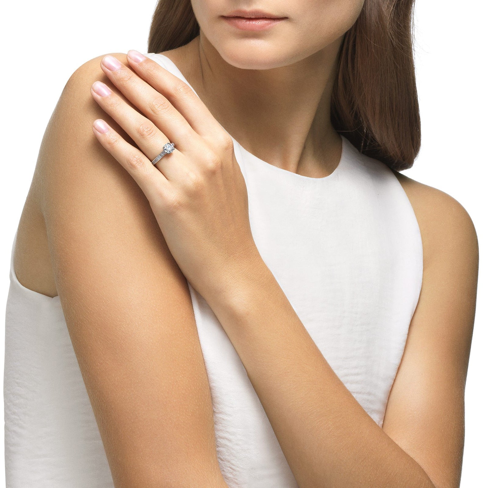 Ring arm subdivided diamond-set thin straight arm, straight arm