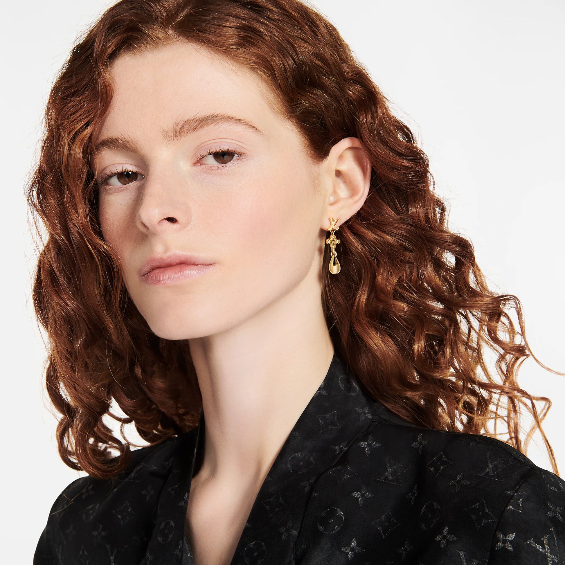 LV-M00771 Light Gold LOGO Plum Blossom Drop Shape Combination Earrings and Studs