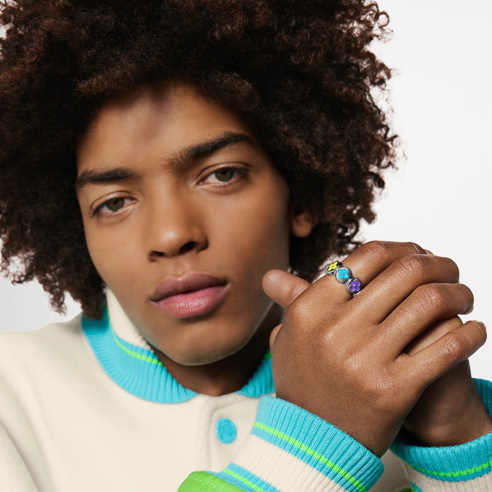 LV-M0959M enamel flower four-leaf clover flying mark couple ring set