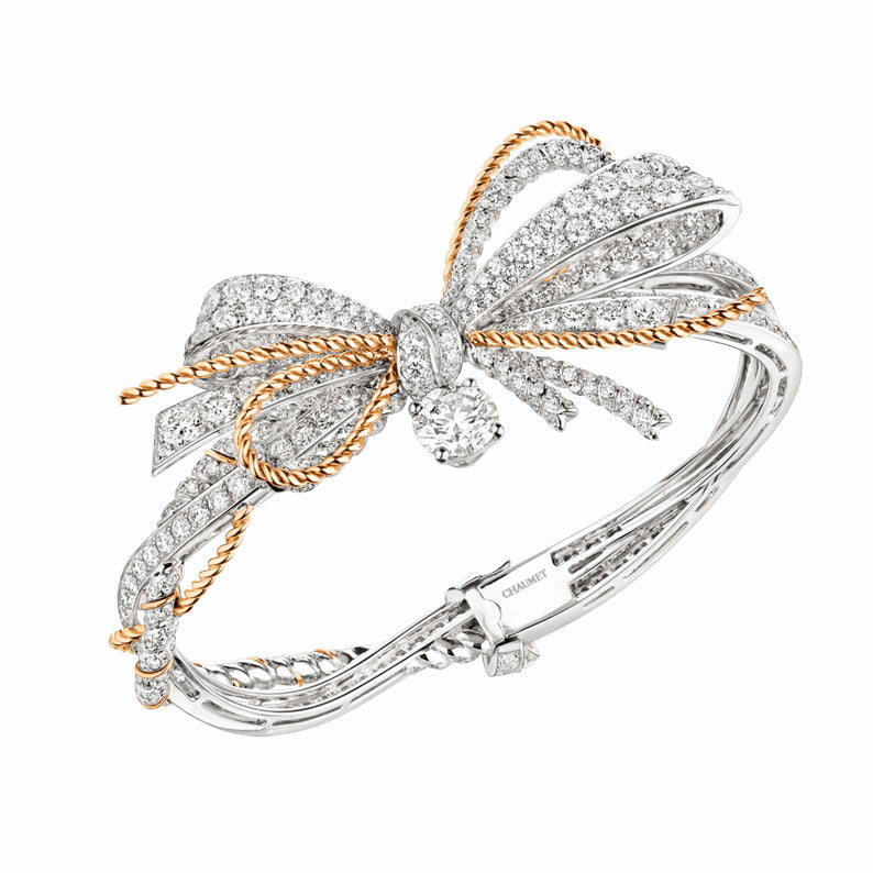Features twisted rope/spiral, bow knot, reverse ribbon, dense diamonds, color separation