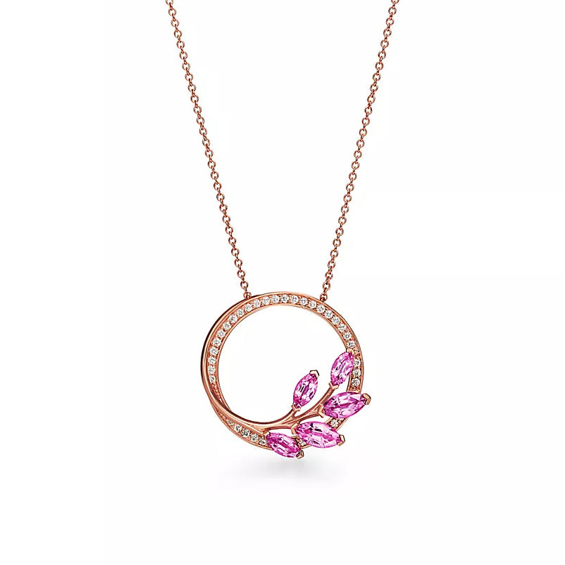 TIF-70532379 Diamond Vine Circle Tie Chain Pendant Necklace