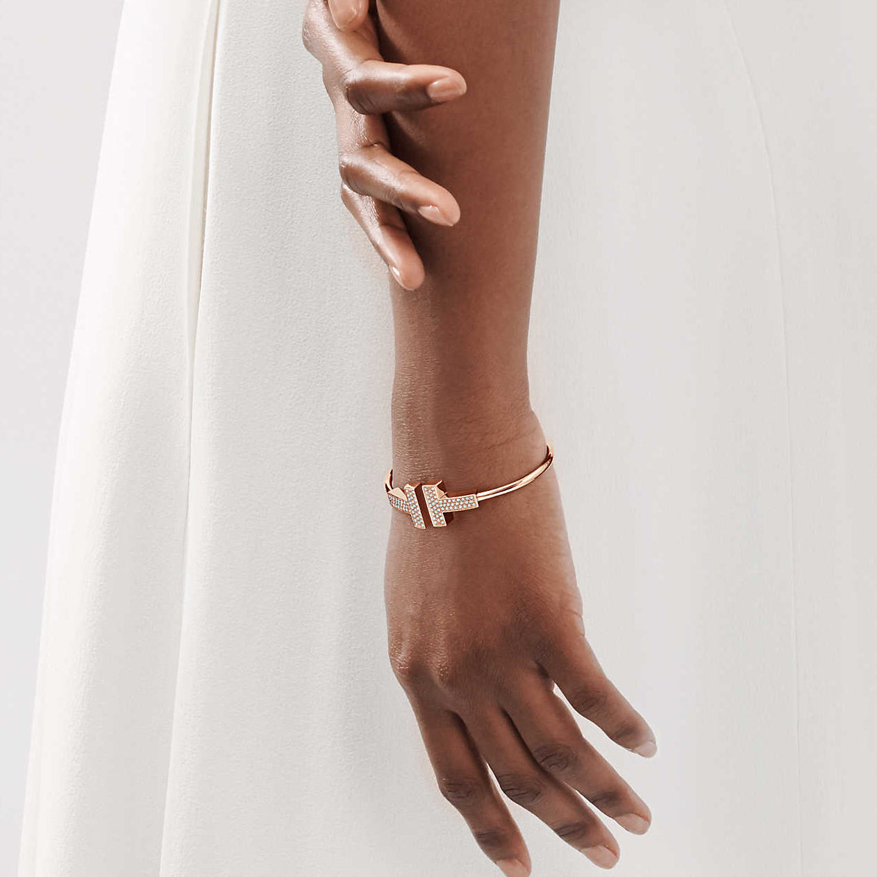 TIF13746997 Large double diamond T-head open coil bracelet 16#