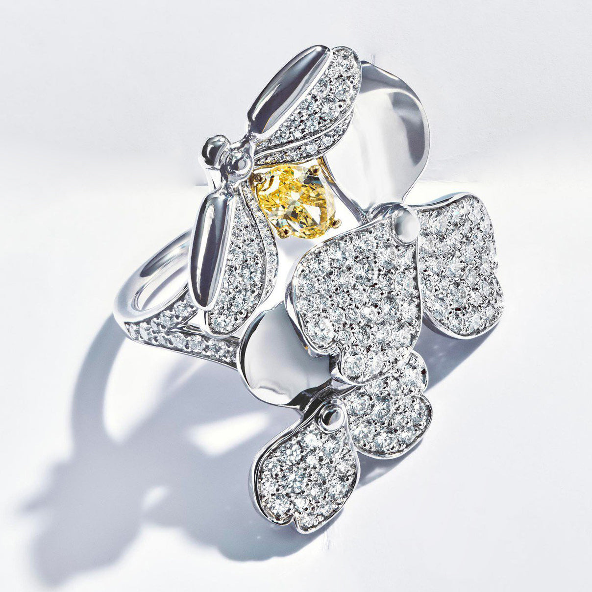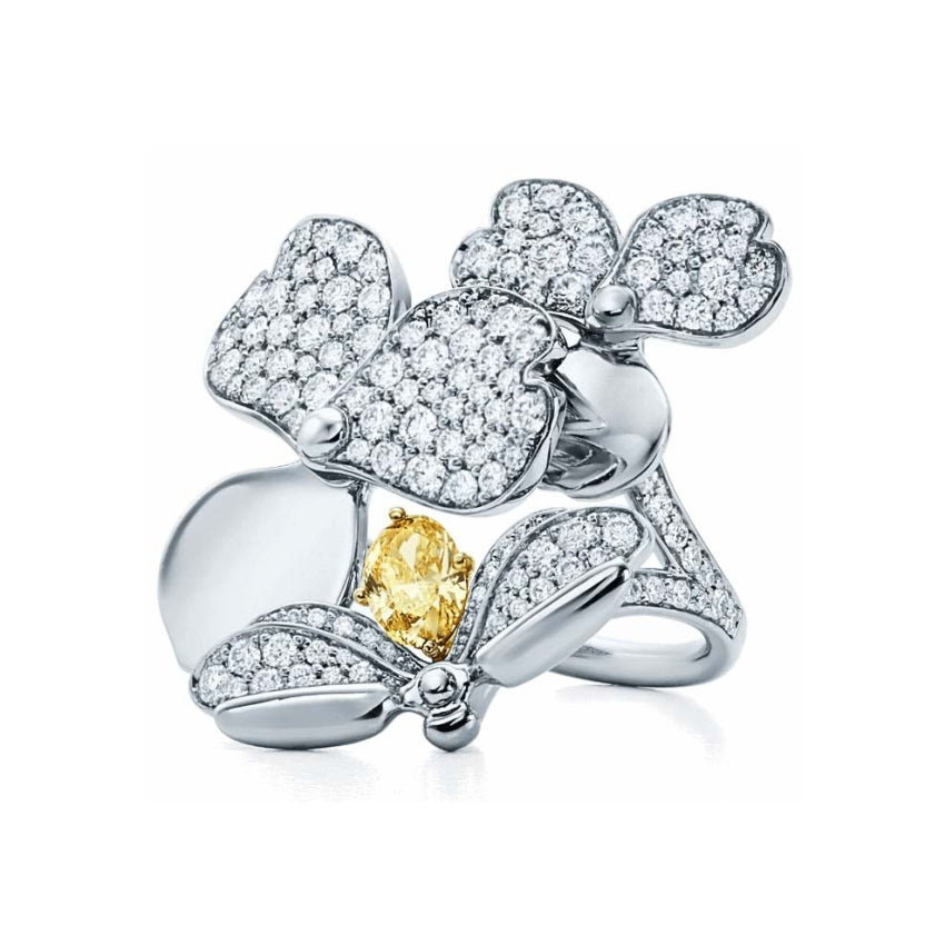 TIF52640458 Flower Rhyme Series Yellow Diamond Firefly Ring 14#