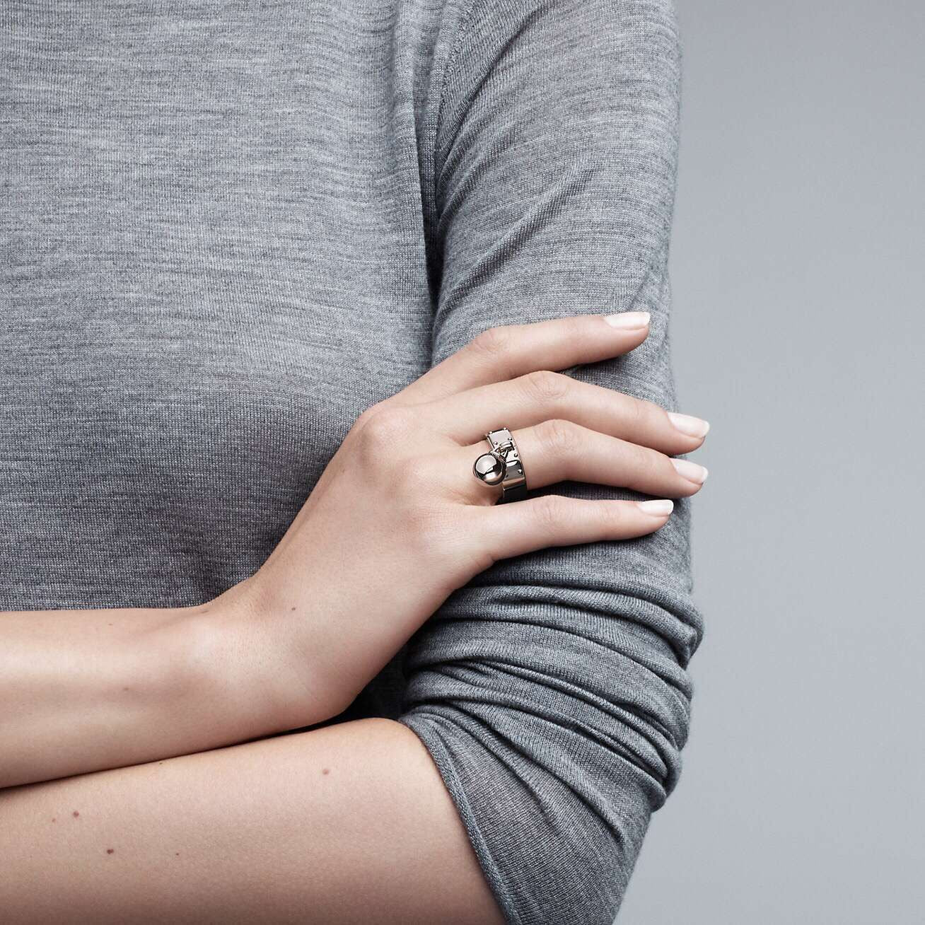 TIF89138570 light gold ball pendant wide ring 15#