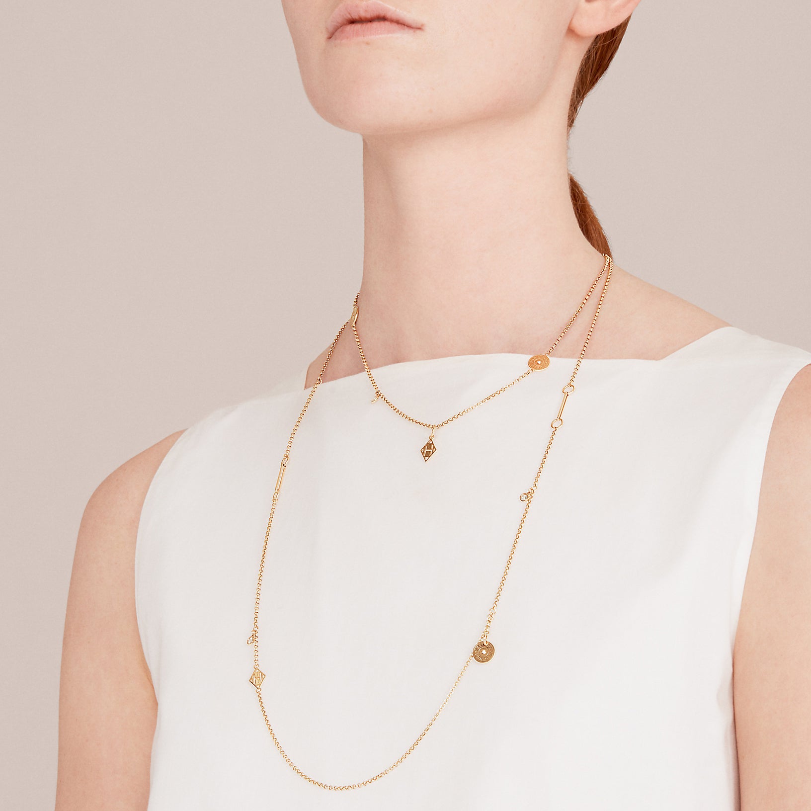 爱H仕-H143374F圆形方形长条组合项链