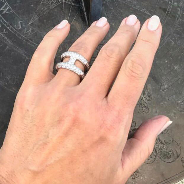 爱H仕-H143690B 12.7mm卜面半钻字母H开口戒14.5#