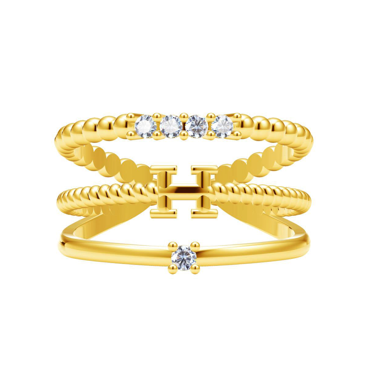 爱H仕-H208952B-H字母扭绳珠珠镶钻三线臂开口戒15#