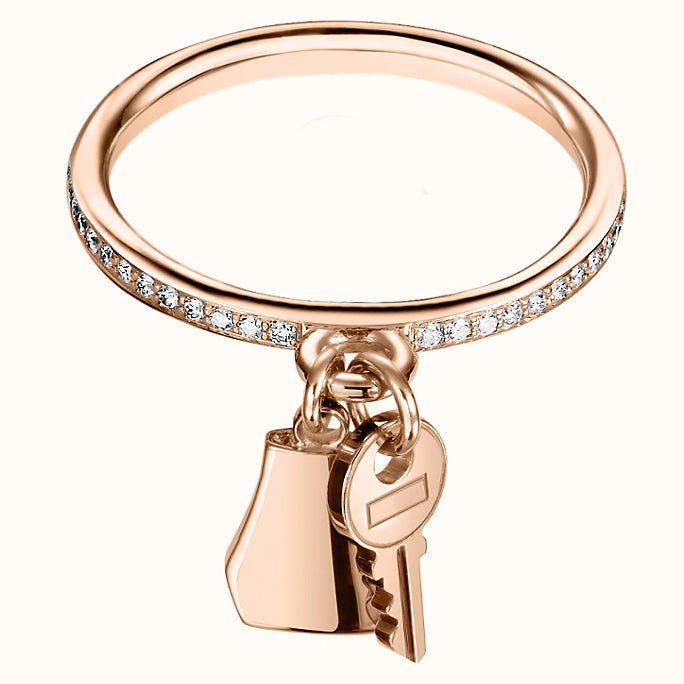 爱H仕-H220654B光金包包钥匙半镶直臂戒指11.5#