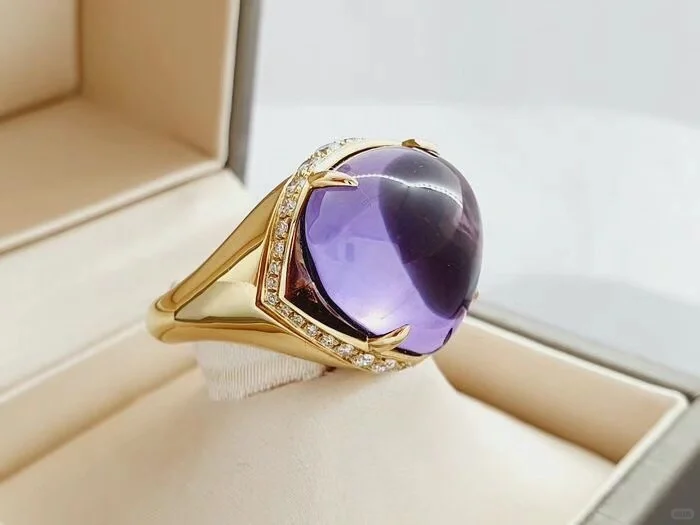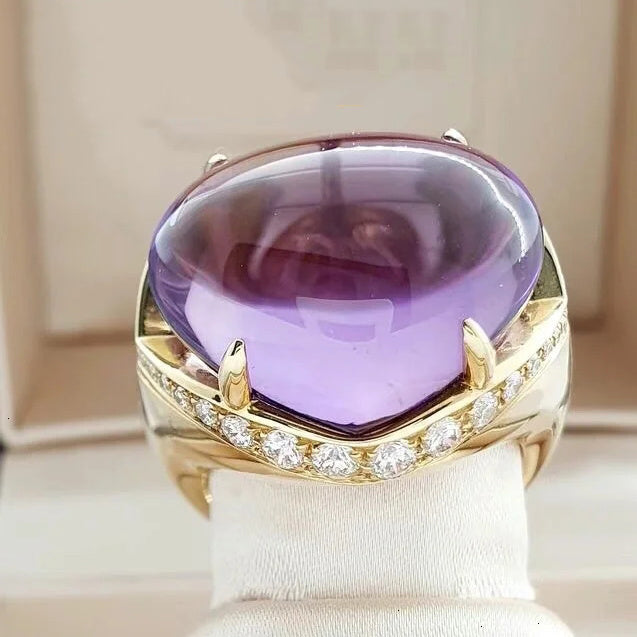 BGL-13540桃形波面紫晶围石戒指
