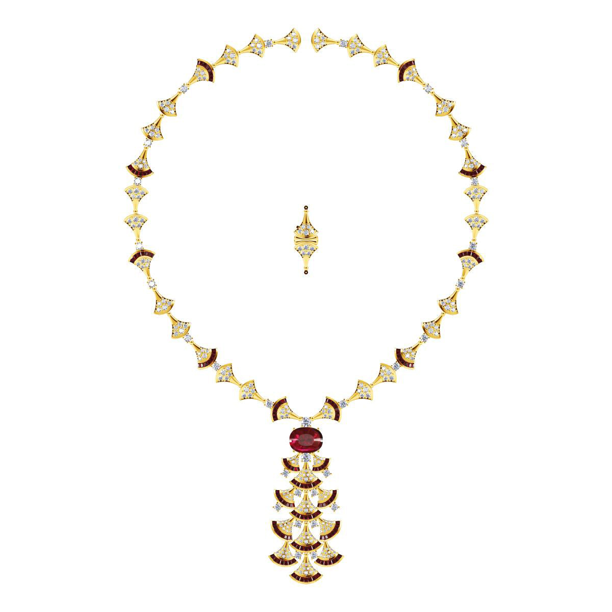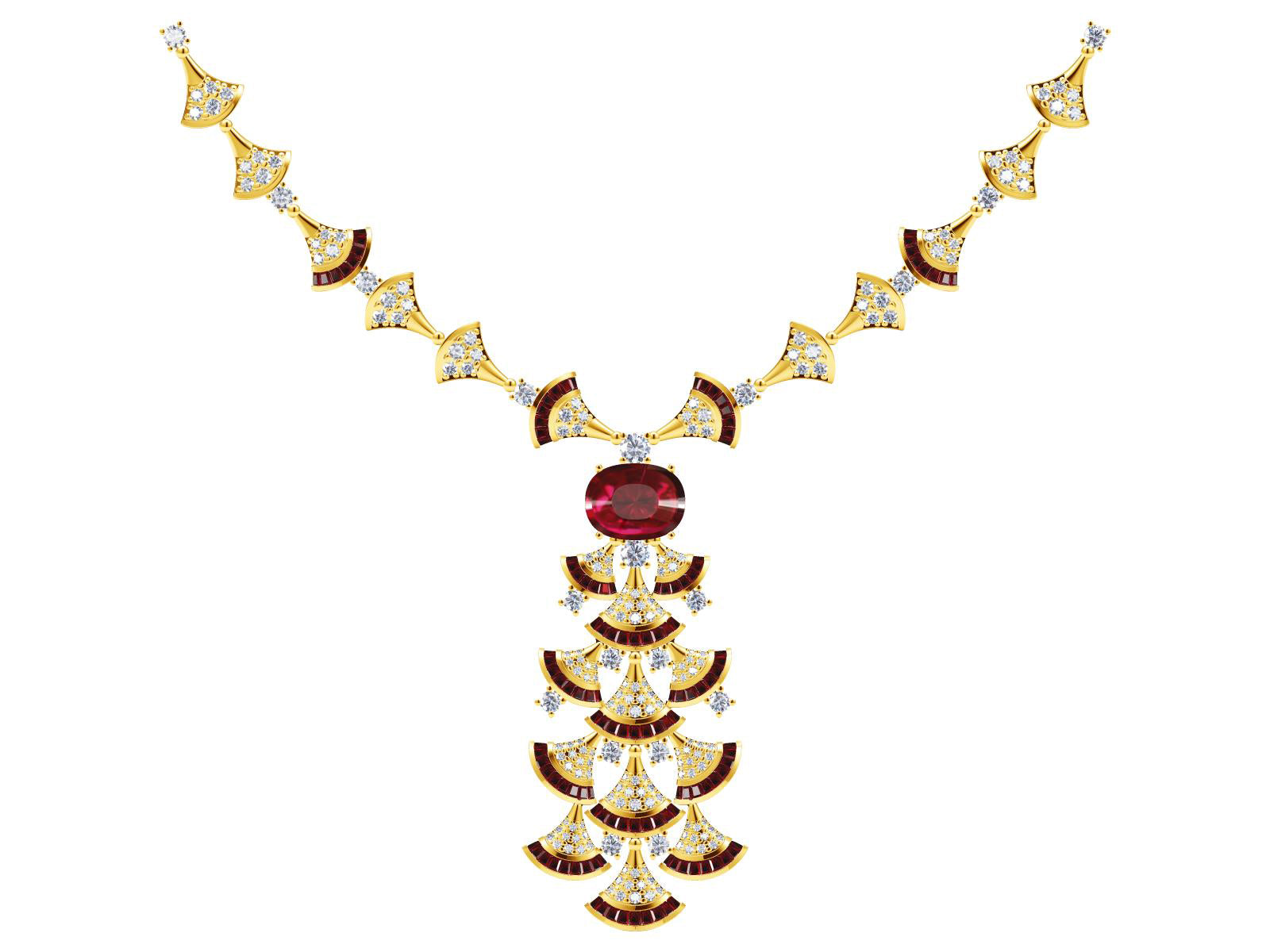 BGL-260855满钻扇形裙子扇子彩宝项链主石13x10mm
