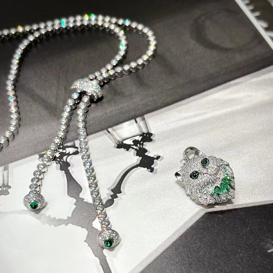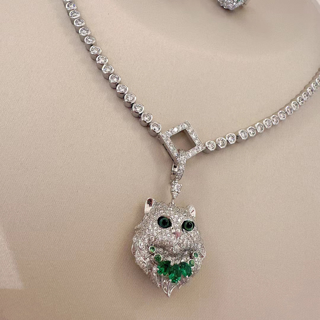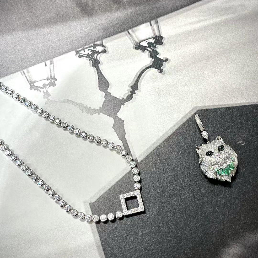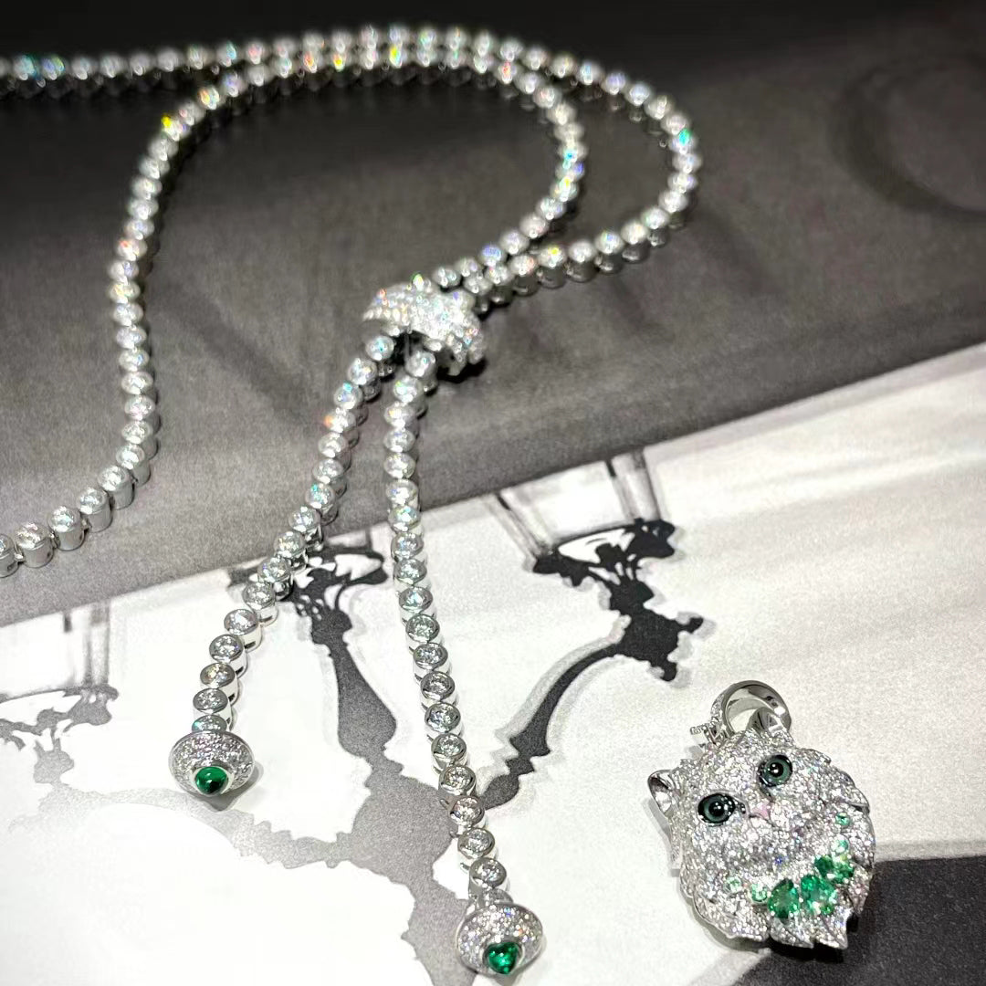 BSL-JCL01323猫头彩宝满钻 项链 可拆卸 背后实心 拉丝纹路