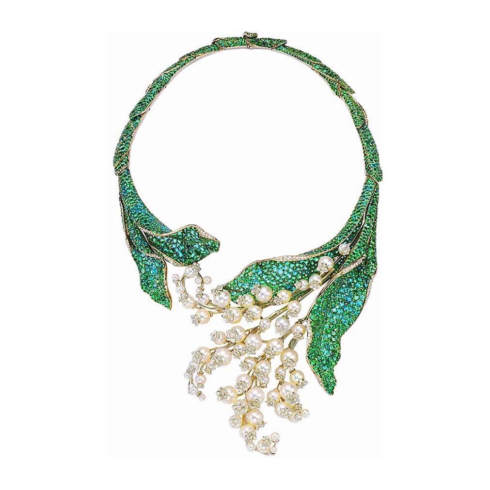 DA-JBAG99381珍珠叶花草满钻项链