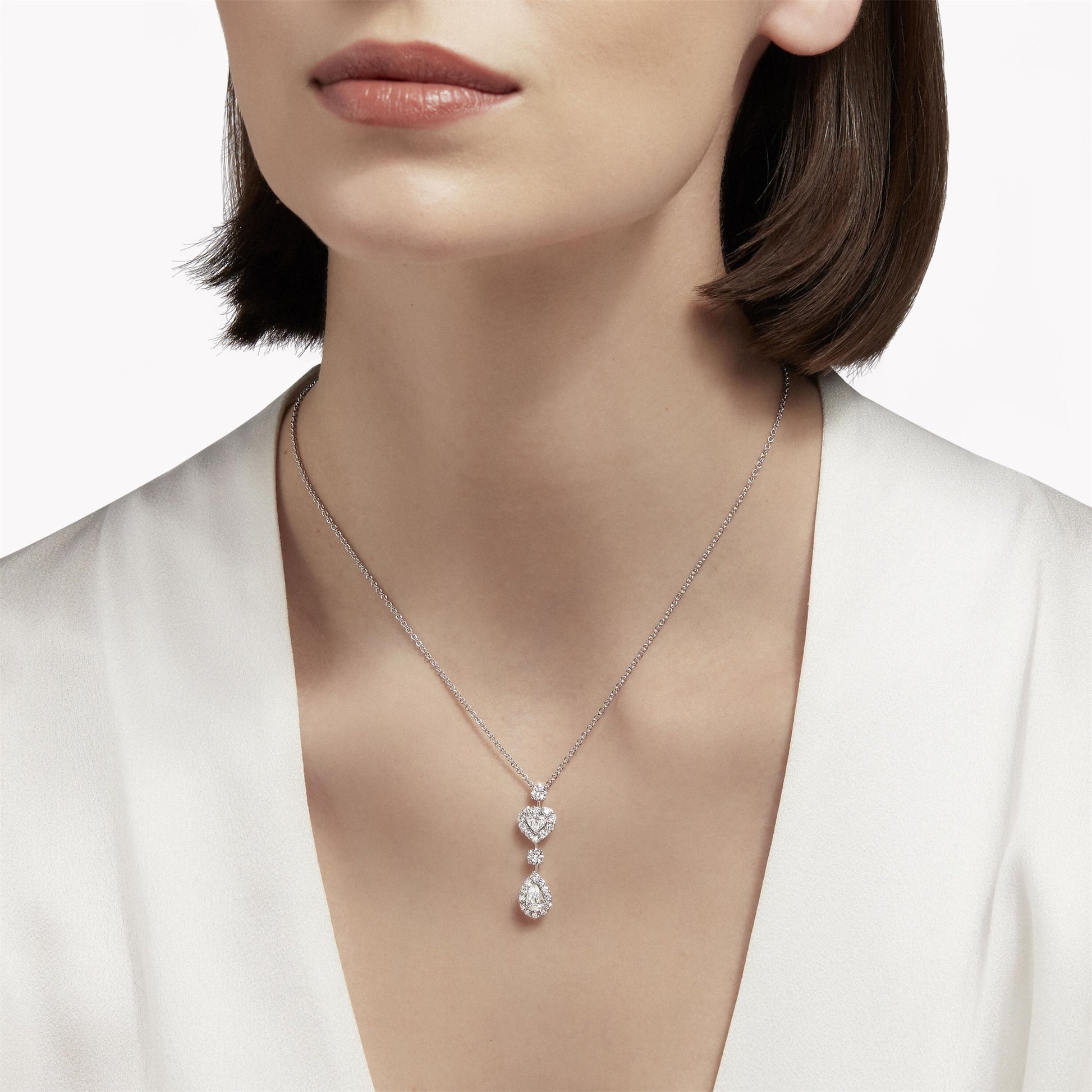 GLF-RGP767心形钻水滴钻围石组合长条栓链吊坠项链