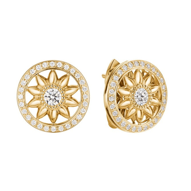 HW-EADPRD1MWG镂空满钻太阳花圆耳环短耳夹