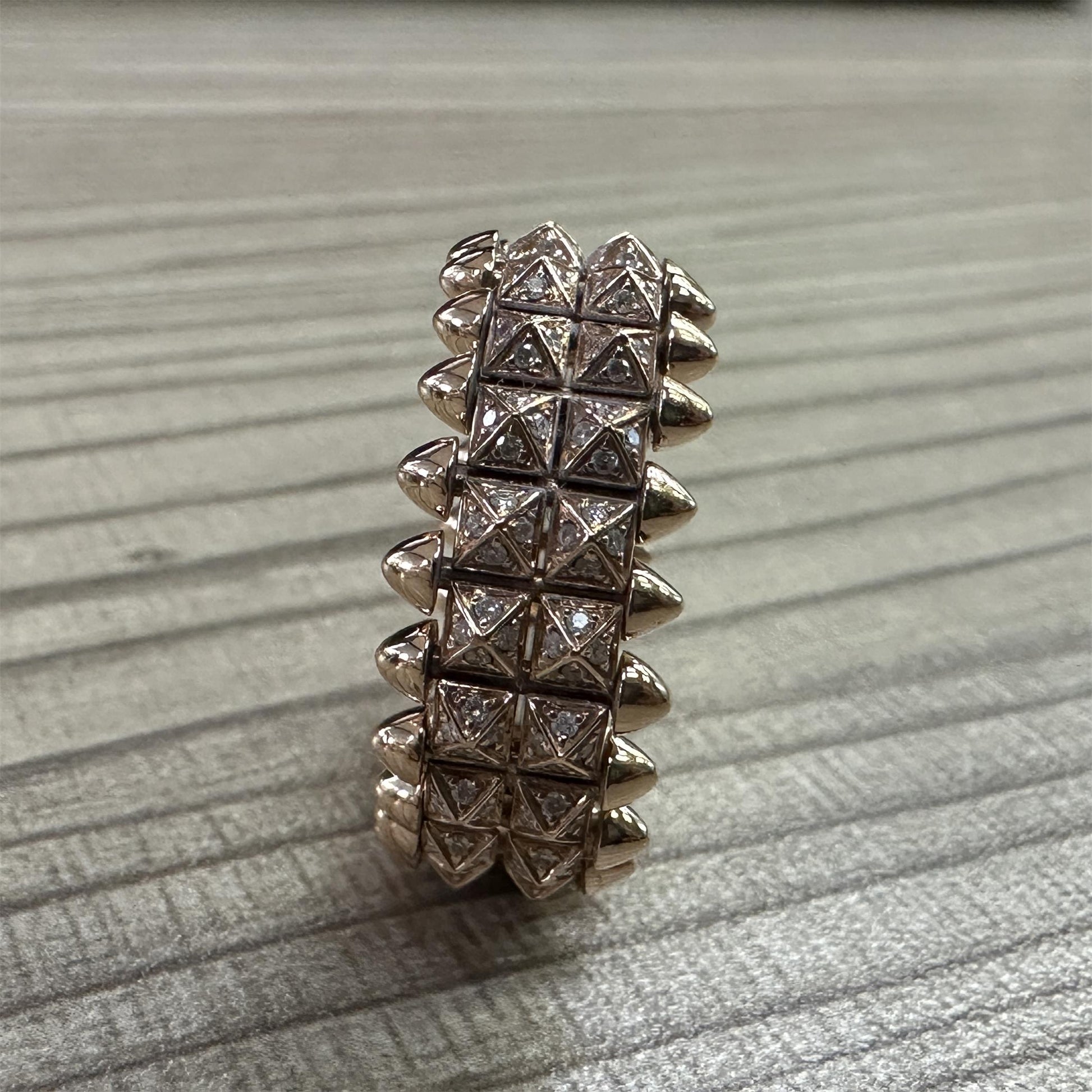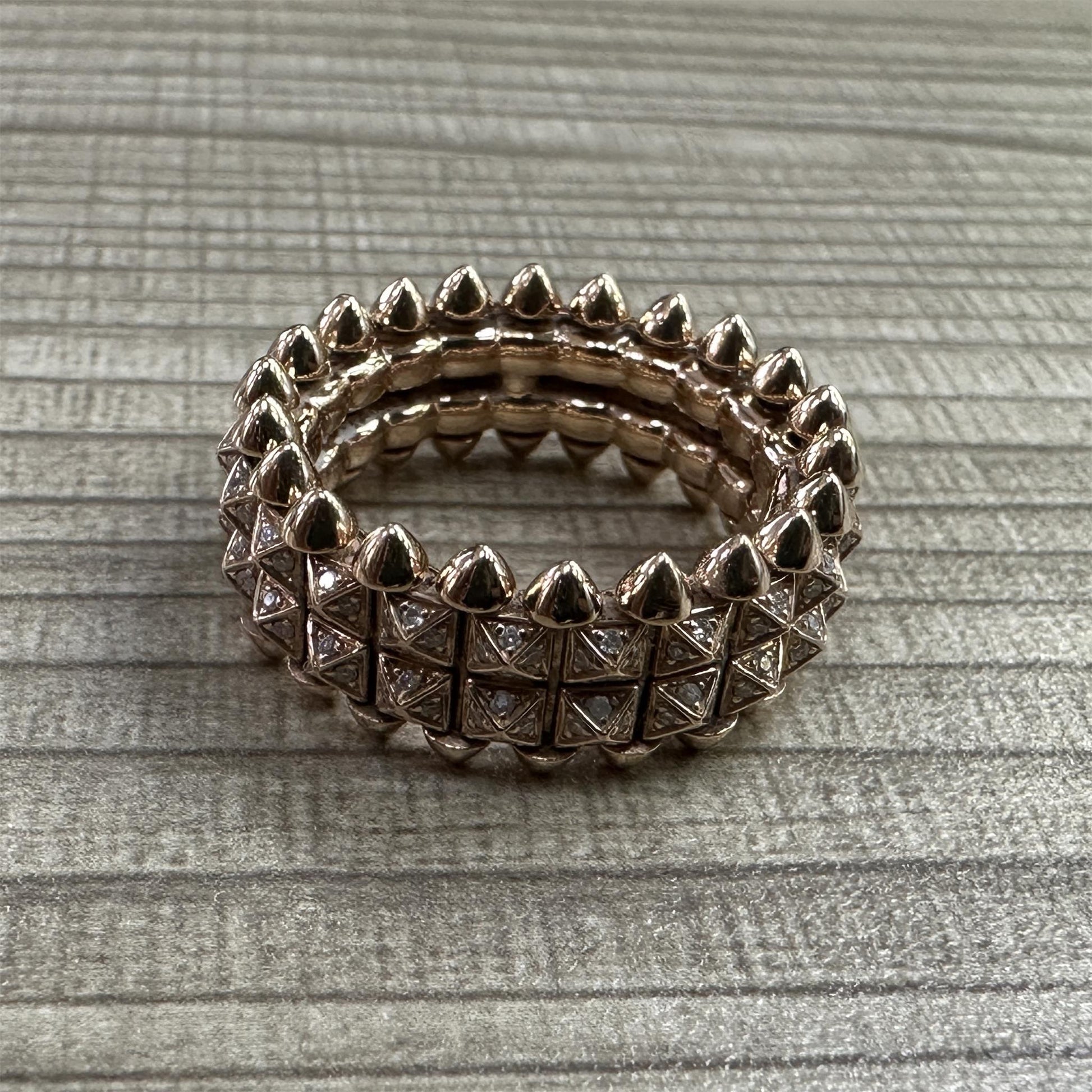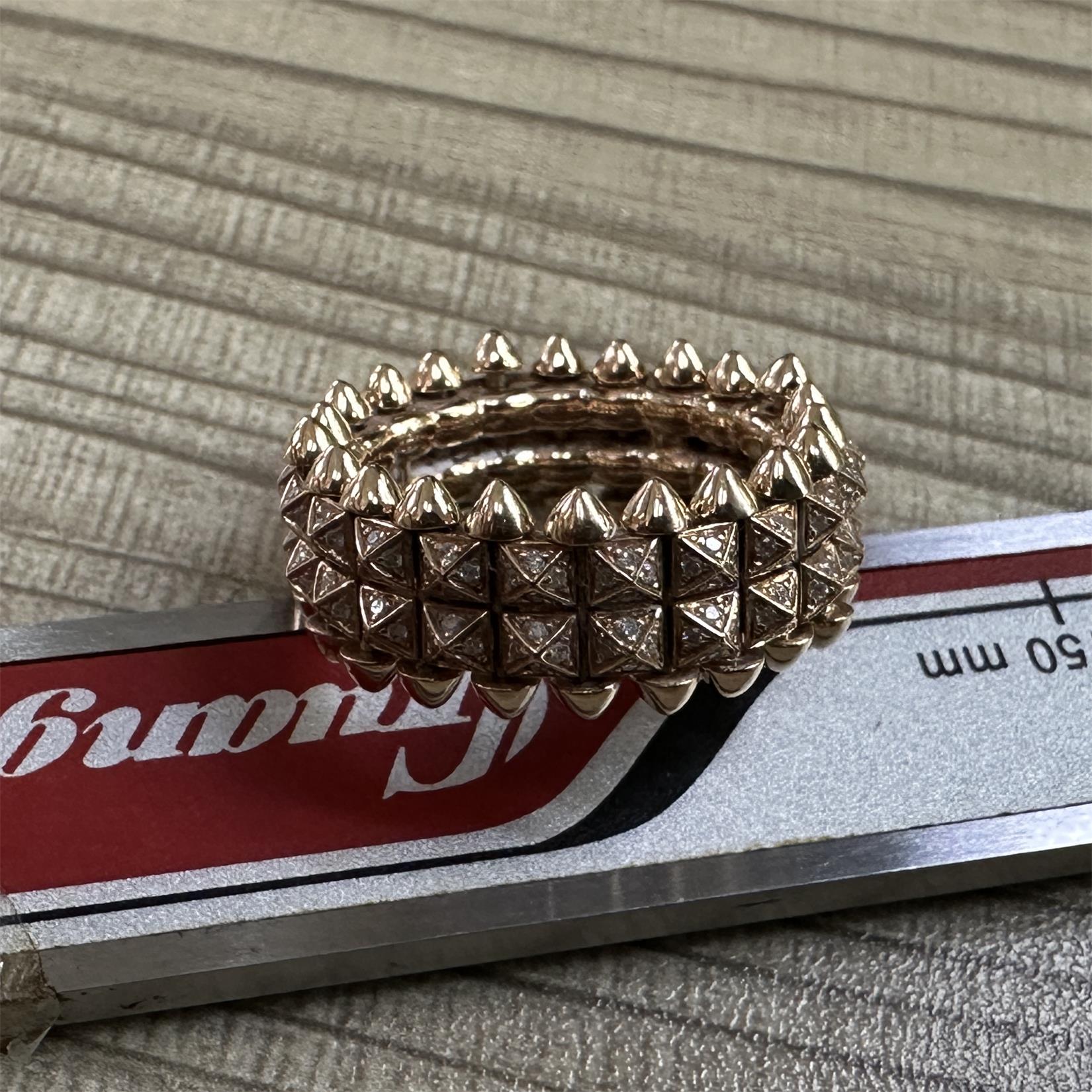 KDY-B4237900客版金字塔锥角双排突突铆钉戒指镶钻款