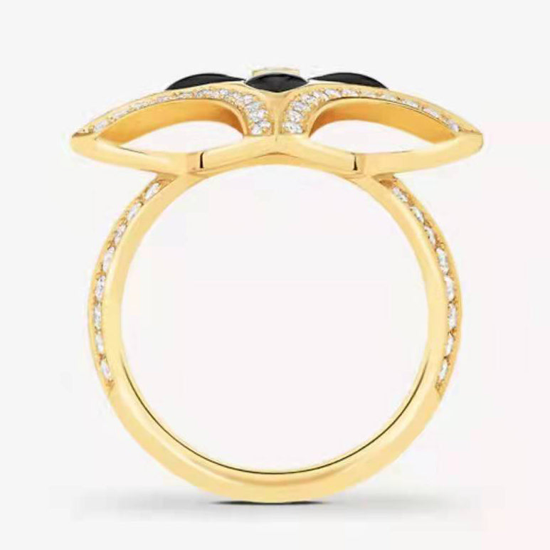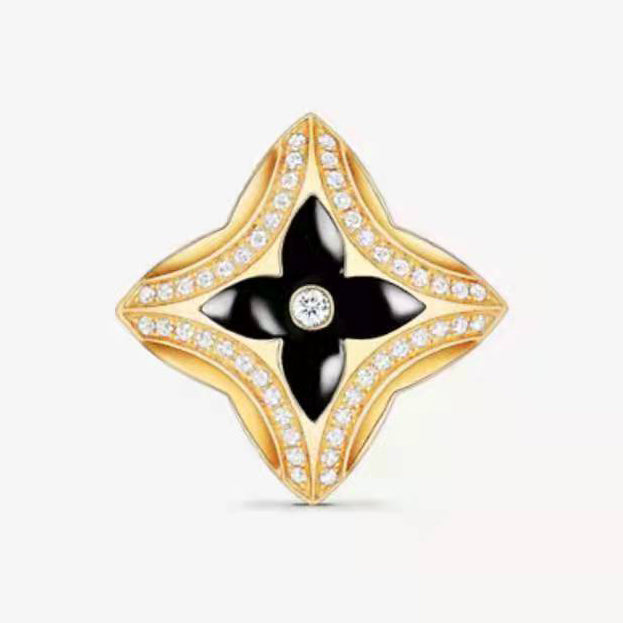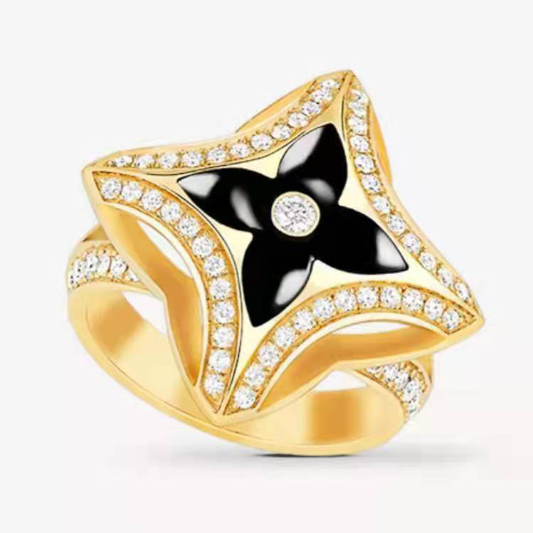 LV-Q9O56L黑玛瑙梅花飞镖戒指 12#