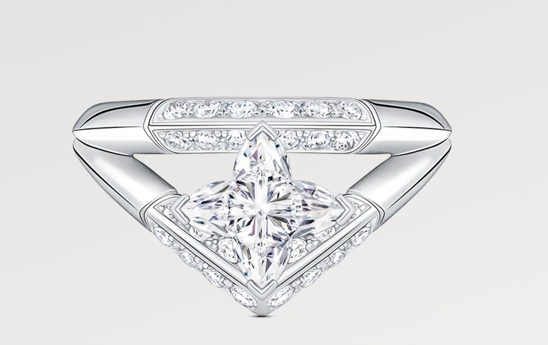LV-Q9Y42F四爪星形主石V尖双排剑戟臂戒指