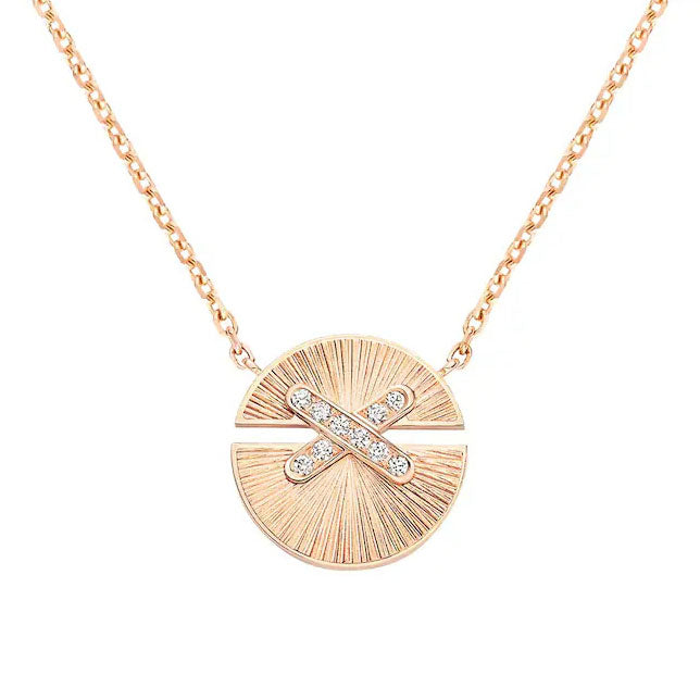 SM-085434 13mm小号玛瑙裂开圆形交叉光金刻痕栓链吊坠项链