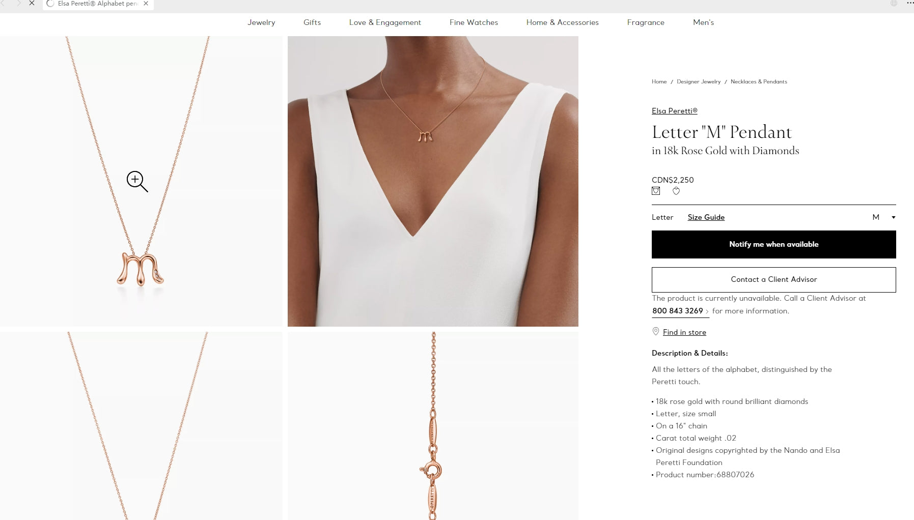 TIF-68807026字母M吊坠