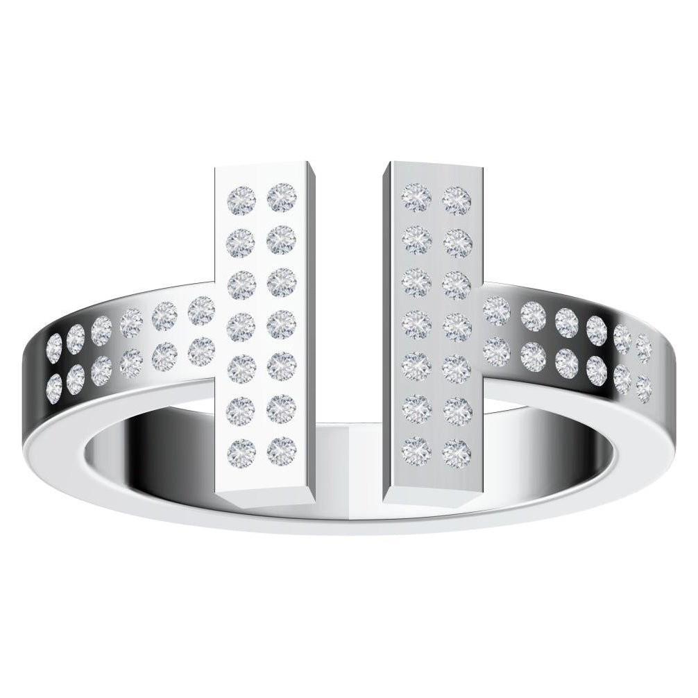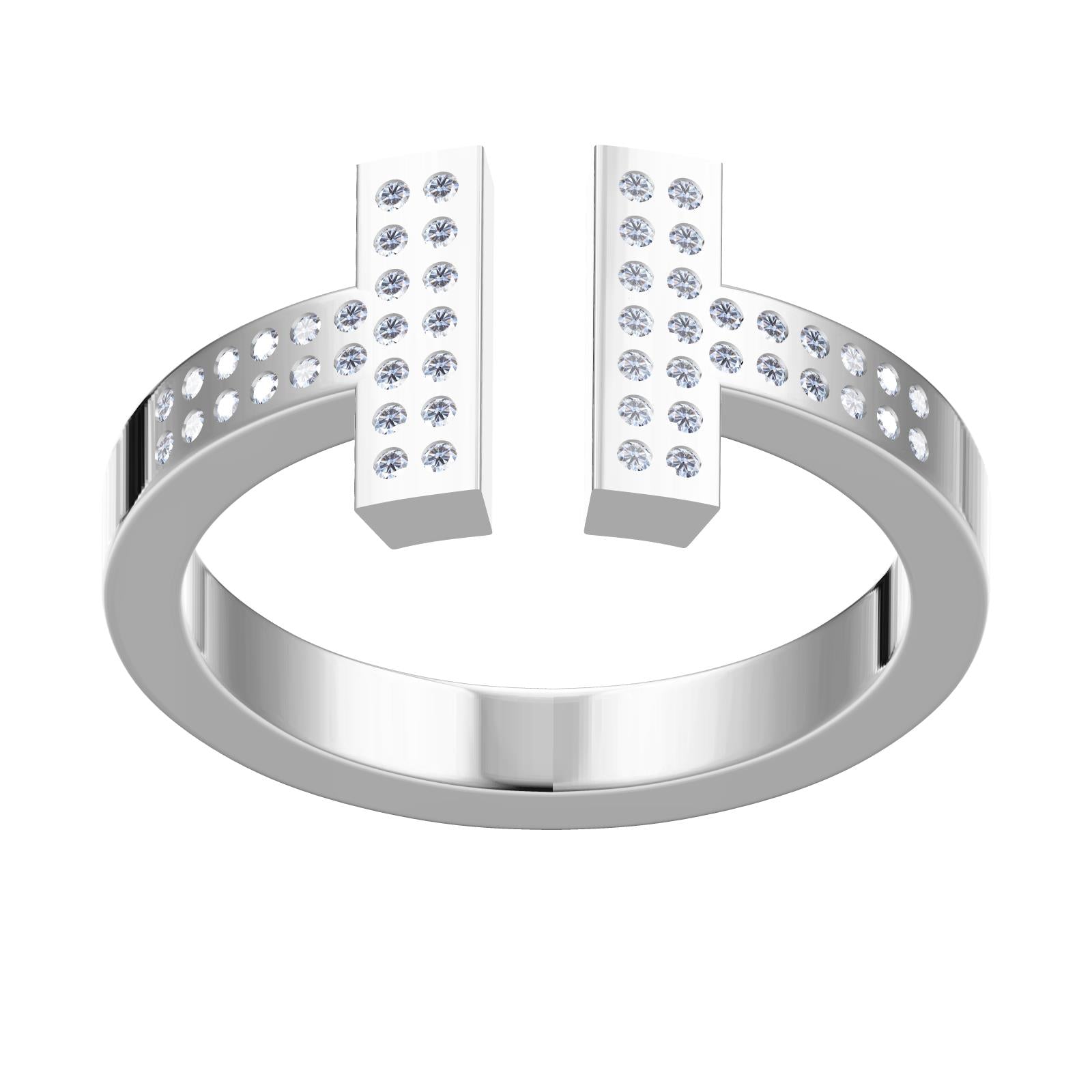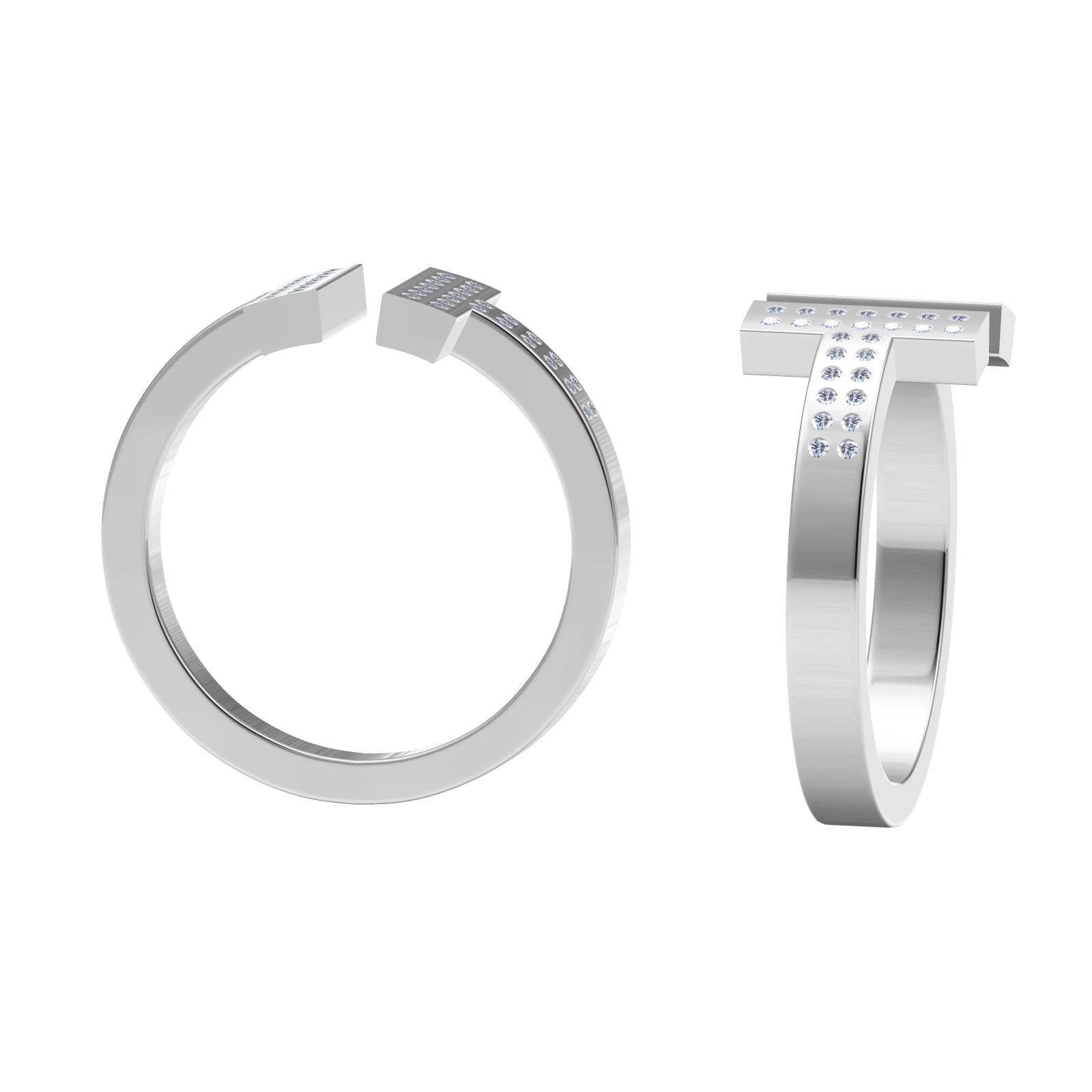 TIF30583436镶钻方形T字开口光金戒指16#