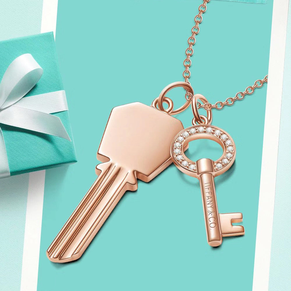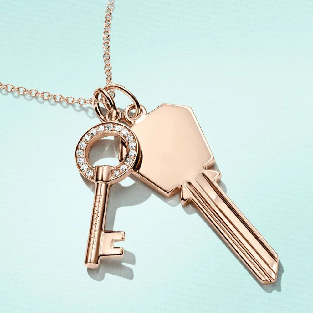 TIF44077345光金六角方形+圆形镶钻小钥匙组合吊坠