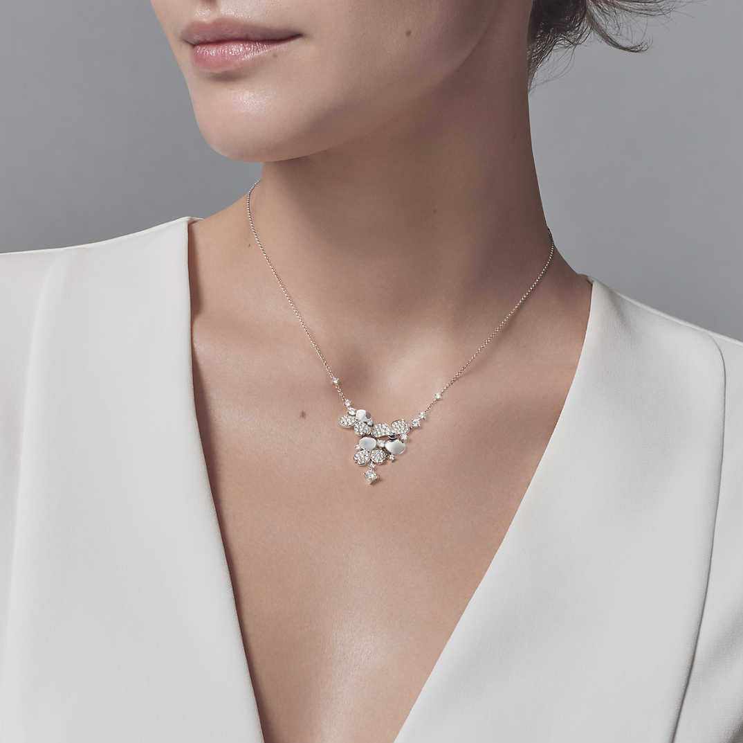 TIF55783303半钻三叶草3花簇项链