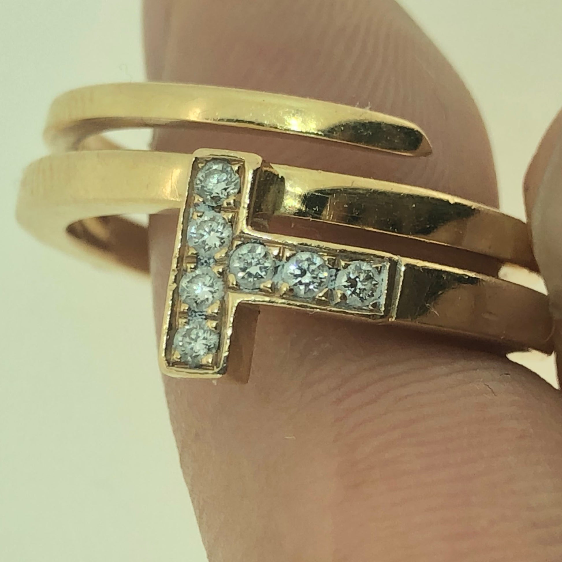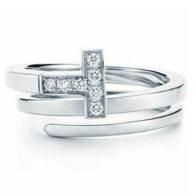 TIF6713805客版镶钻T字方形缠绕式戒指16#