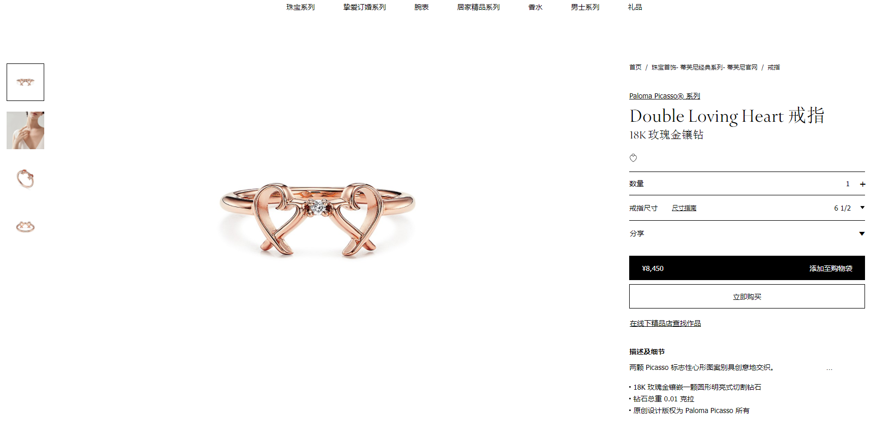 TIF79924181单钻交叉双心形戒13#
