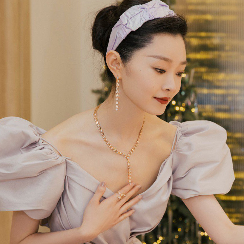 TIF8854124镶钻橄榄枝树叶长耳钉