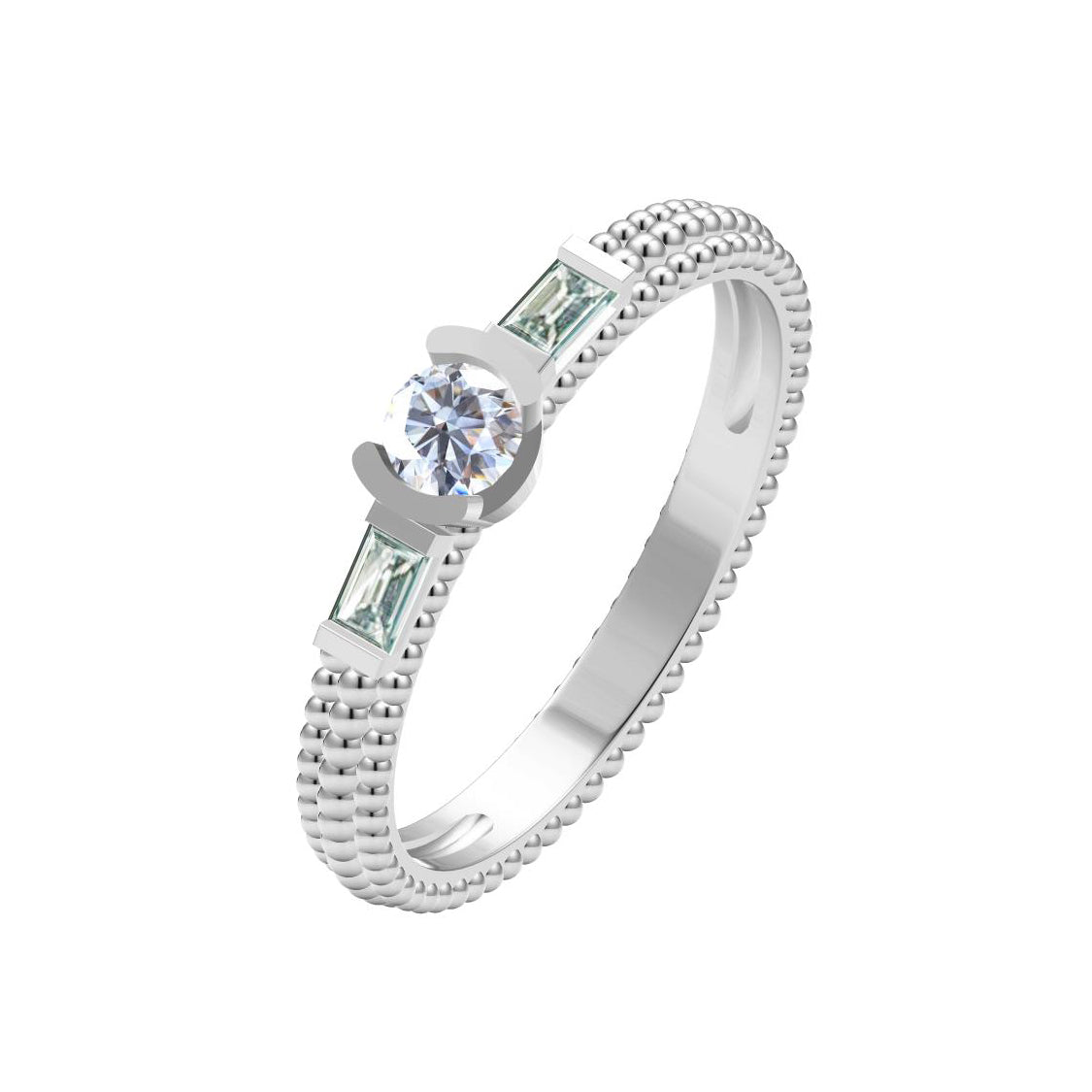 VCA14466928逼镶梯方珠珠直臂戒12.5#