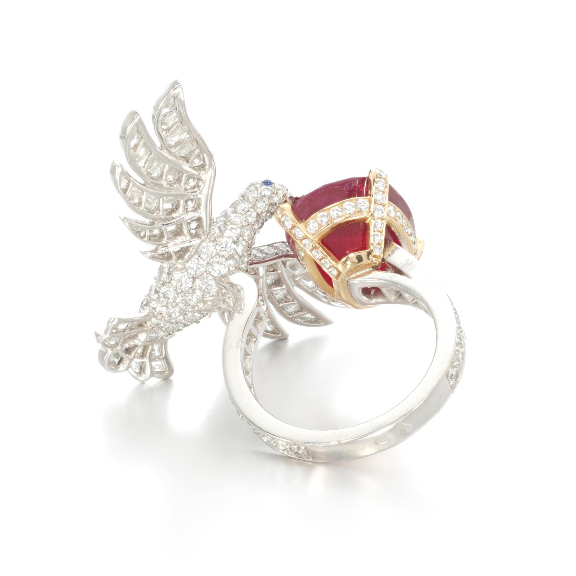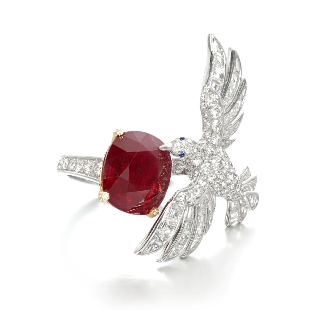 VCA304541四爪枕形彩宝翅膀小鸟戒指主石12.5×14.5mm11#
