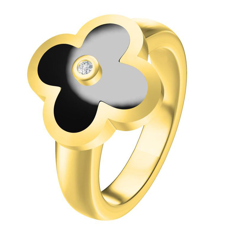 VCA6128573 15mm玛瑙波面四叶草戒指(6.5#)