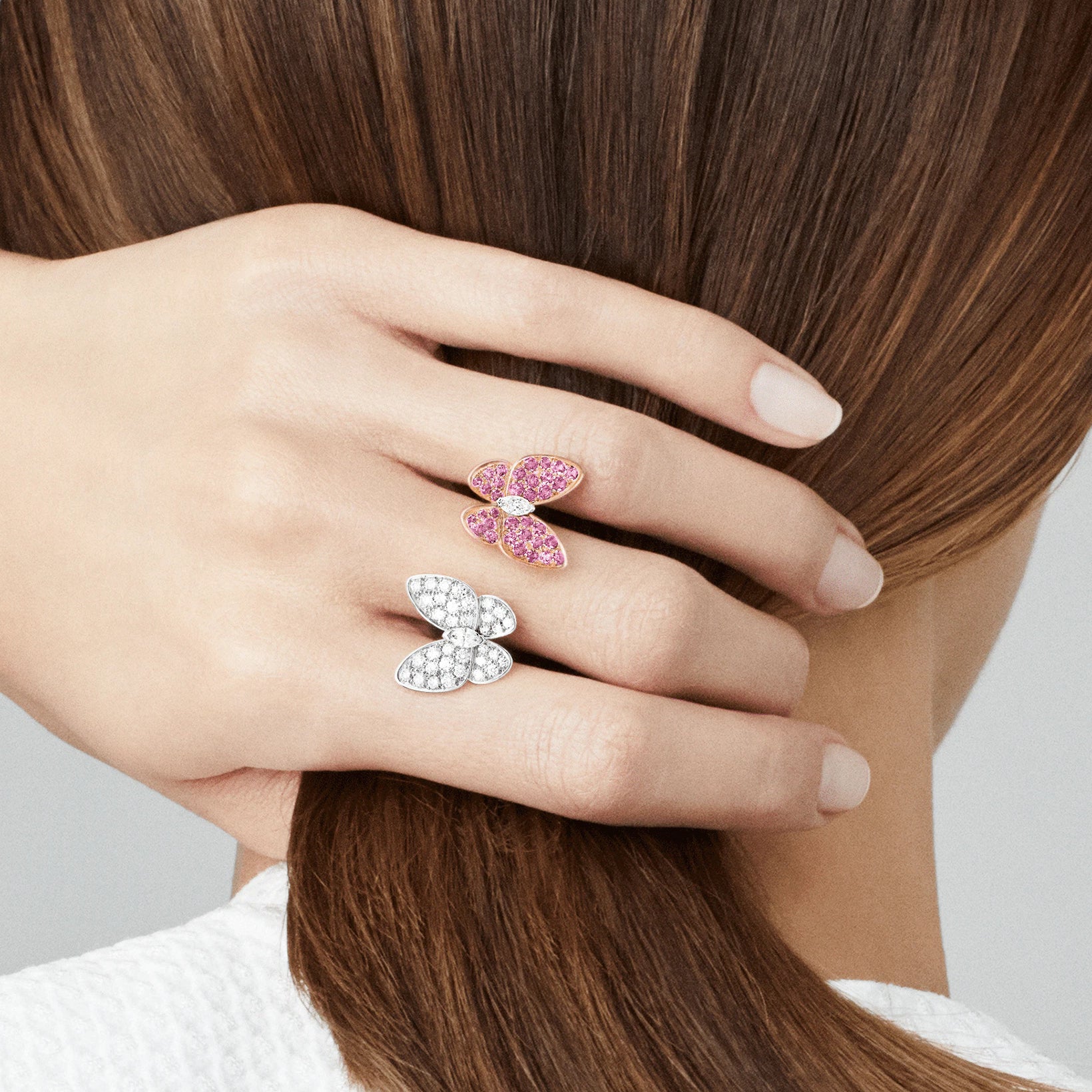 VCARO61900客版满钻双蝴蝶开口戒12#