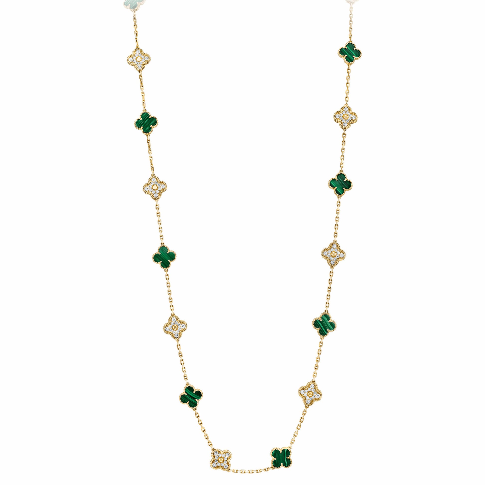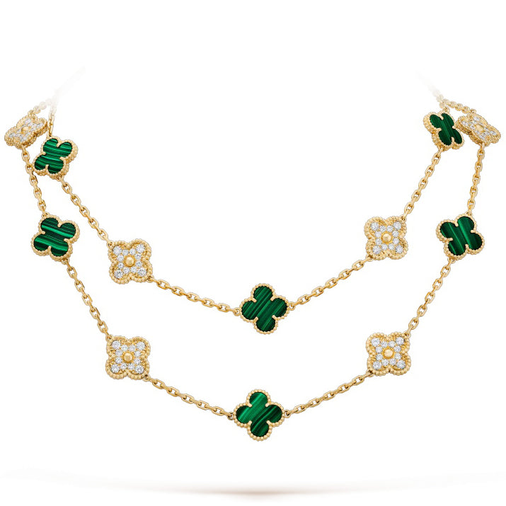 VCARO7GP00 15mm玛瑙光珠四叶草20花项链