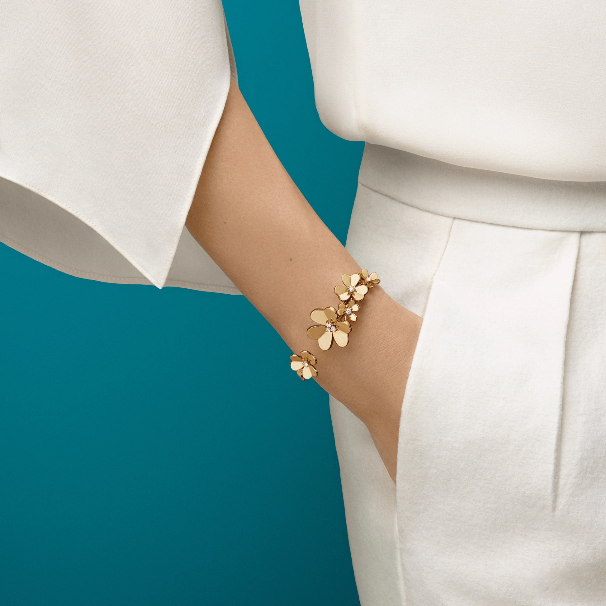 VCARP6L200三叶草7花开口手镯17#
