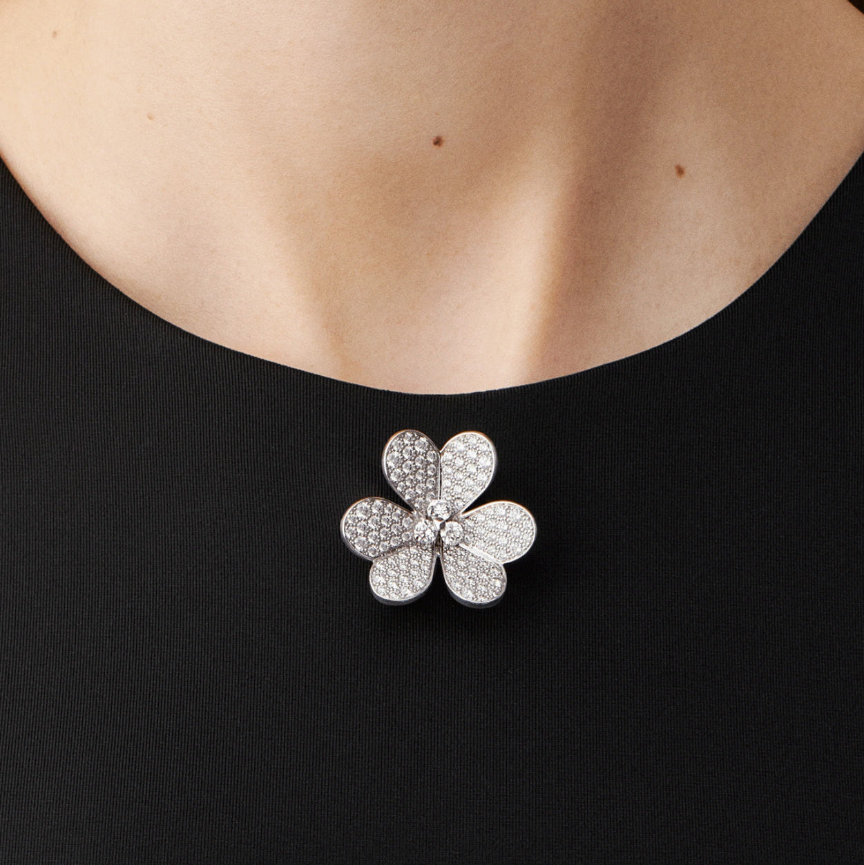 VCARP6L600 28.4mm三叶草满钻吊坠胸针